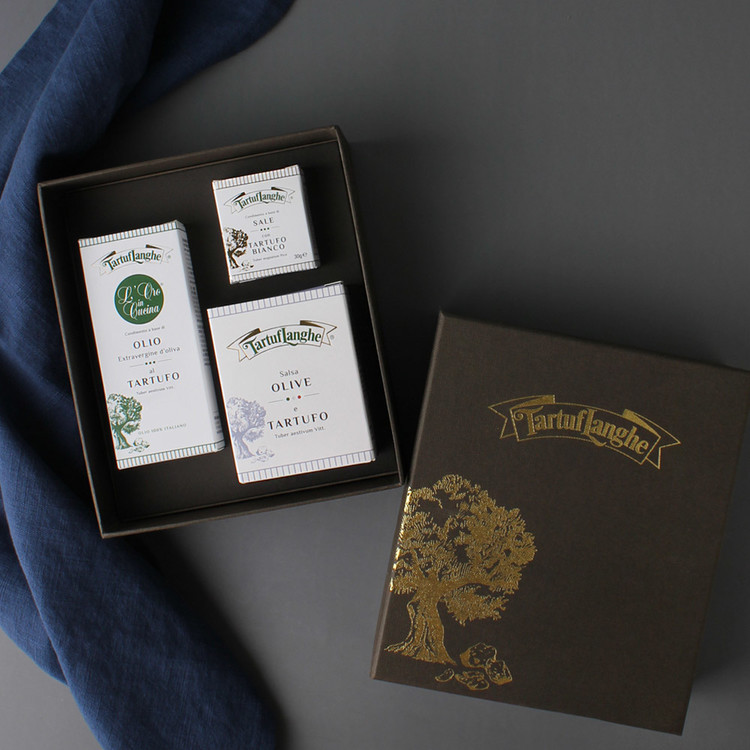 이탈리아 트러플 장인 기업 타르투플랑게 제품으로 구성된 고급 트러플 선물 세트입니다.